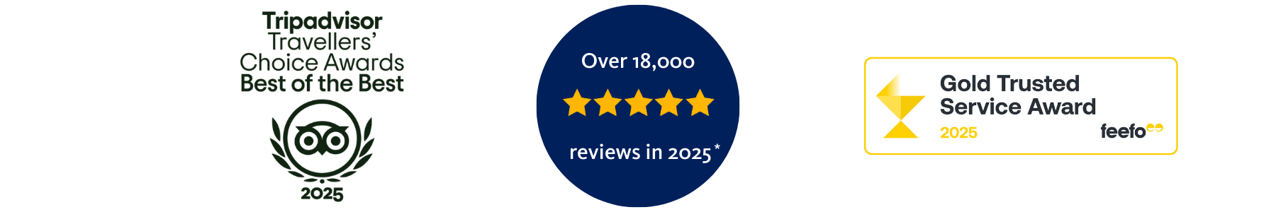 * Reviews received in 2025 via TripAdvisor, Viator, Google, Yelp, Feefo & GetYourGuide